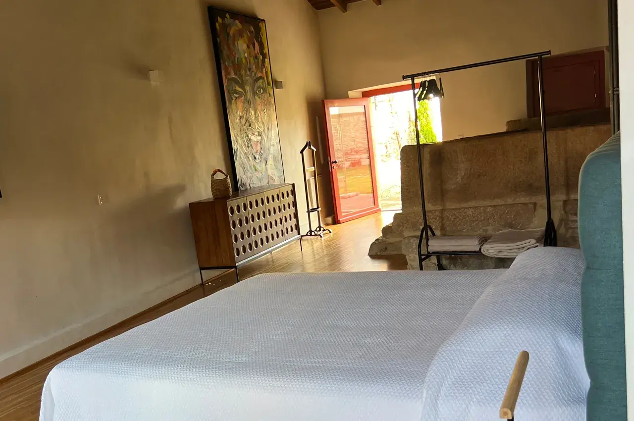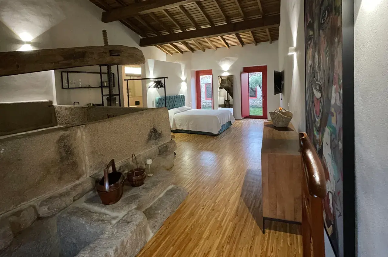 It's a unique space where an old press evokes the time when the grapes, of the "códega do Larinho" variety - the name of this village, and where you can now rest and enjoy this rurality - were trodden by simple, hard men, like the iron that exists in the region. This flat is equipped with a small balcony/kitchen, bathroom and double bed. It has air conditioning, which gives it a temperature according to the time of year. It has access to the swimming pool, from where you can contemplate a unique landscape.